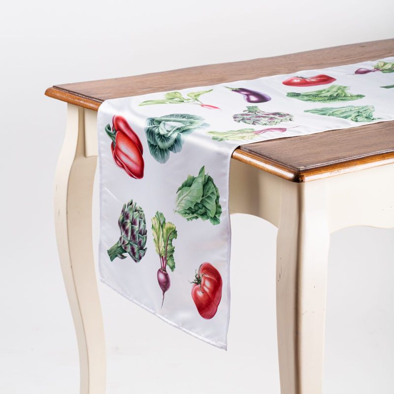 Дорожка на стол “Овощи” станет эффектным дополнением интерьера Вашего дома. Выполненная из современного прочного материала, украшенная изображением сочных свежих овощей, она будет радовать Вас, создавая прекрасное настроение и наполняя Ваш дом ощущением лета. Дорожка может использоваться как самостоятельный элемент интерьера, так и в качестве дополнения коллекции “Овощи”. Оригинальный дизайн и стильное цветовое решение позволяют расставить необходимые акценты. Создайте неповторимую атмосферу в Вашем доме с предметами интерьера из нашего магазина!