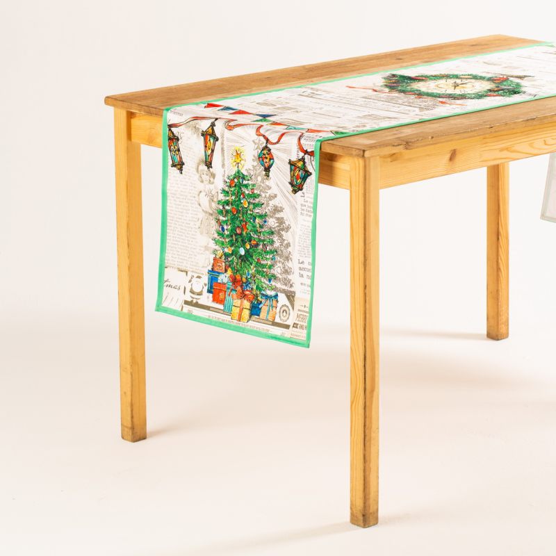 Эффектная дорожка на стол “Пряничное Рождество” подарит новогоднее настроение и наполнит Ваш дом ощущением праздника. Дорожка украшена изображением Деда Мороза, наряженными елками, пряничными домиками, новогодними и рождественскими персонажами. Основной фон представляет собой коллаж из газетных вырезок и фотографий на новогоднюю тему. Она изготовлена из прочного и практичного твила (100% полиэстер). Может использоваться как самостоятельный элемент интерьера, так и в качестве дополнения коллекции “Пряничное Рождество”. Оригинальный и стильный дизайн позволяет расставить необходимые акценты. Создайте неповторимую атмосферу новогодних праздников в Вашем доме с предметами интерьера из нашего магазина!