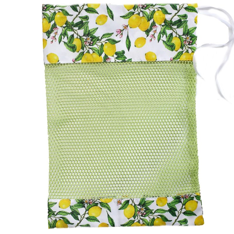 Мешок для хранения “Лимоны” поможет решить проблему хранения овощей. Он изготовлен из прочного и практичного габардина, на второй стороне имеет специальную сетку для циркуляции воздуха. Сверху затягивается ленточкой. Приятный принт в виде ярких веточек со спелыми лимонами радует глаз. В таком мешке овощи надолго останутся свежими. Также Вы можете использовать его для многоразового использования при походе в магазин вместо обычных полиэтиленовых пакетов.