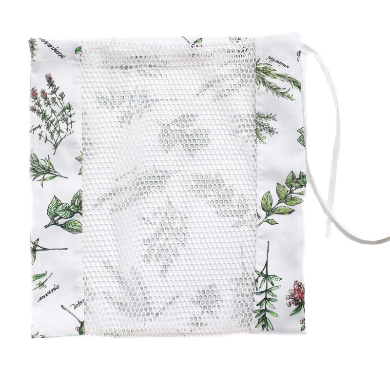 Мешок для хранения “Пряные травы” поможет решить проблему хранения овощей. Он изготовлен из прочного и практичного габардина, на второй стороне имеет специальную сетку для циркуляции воздуха. Сверху затягивается ленточкой. Приятный принт в виде ароматных трав на белом фоне радует глаз. В таком мешке овощи надолго останутся свежими. Также Вы можете использовать его для многоразового использования при походе в магазин вместо обычных полиэтиленовых пакетов.