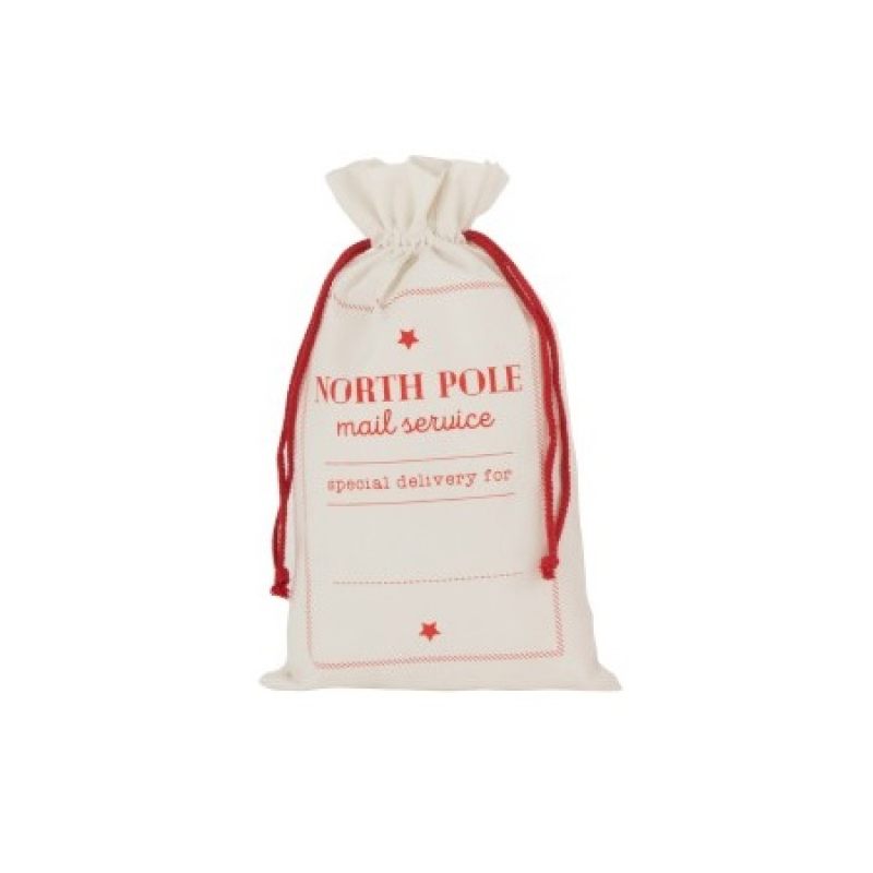 Мешок для подарков позволит создать атмосферу волшебства и чудес. Небольшой мешок выполнен из хлопка и украшен надписями и полосками красного цвета на бело фоне. Прекрасно подойдет для новогоднего/рождественского подарка. Создайте особую атмосферу в Вашем доме вместе с нашим интернет-магазином!