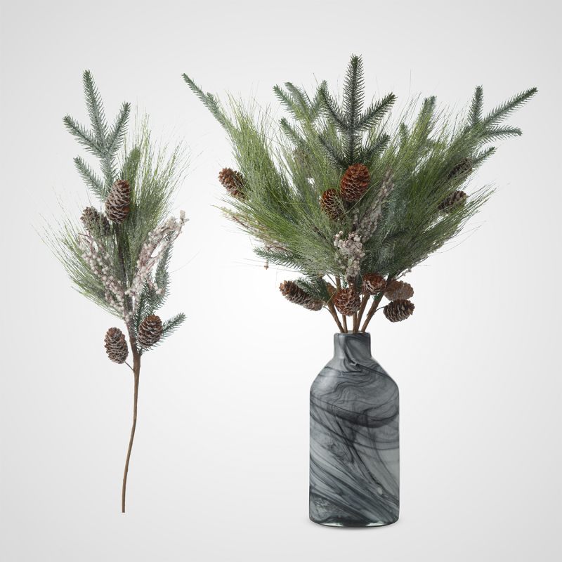 Стильный декор в виде прекрасно выполненной новогодней ветки, украшенной шишками и белыми ягодами, разнообразит интерьер Вашего дома. Веточка изготовлена из пластика. Вы можете составить композицию с другими искусственными веточками или цветами, собрав букет, или использовать для украшения интерьера несколько одинаковых веточек. Приятный цвет и необычная фактура этого декора привлекают внимание. Создайте особую атмосферу в Вашем доме вместе в нашим интернет-магазином!
