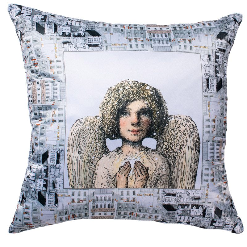 Чудесная двусторонняя мягкая подушка украсит любой уголок Вашего дома и станет его эффектным дополнением. Выполненная из современного прочного материала, с обеих сторон украшенная изображением милого ангела, словно смотрящего из окна на городские дома, она будет радовать Вас, создавая ощущение спокойствия, домашнего тепла и уюта. Наполнитель - холлофайбер. Может использоваться как самостоятельный элемент интерьера, так и в качестве дополнения коллекции “Город ангелов”, которая создана дизайнером “Myatashop” на основе рисунков российского художника Алёны Наливкиной. Оригинальный и стильный дизайн позволяет расставить необходимые акценты. Создайте неповторимую атмосферу в Вашем доме с предметами интерьера из нашего магазина!