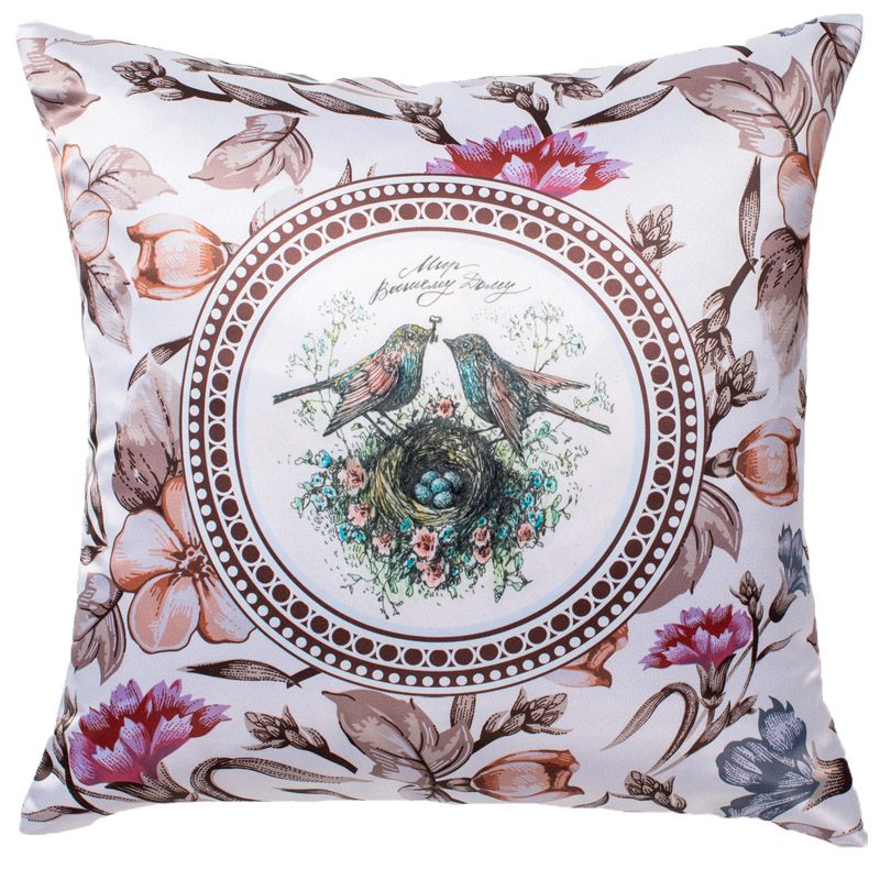 Чудесная двусторонняя мягкая подушка украсит любой уголок Вашего дома и станет его эффектным дополнением. Подушка, выполненная из современного прочного материала и с обеих сторон украшенная изображением прекрасных цветов и рисунком с двумя птичками у гнезда, будет радовать Вас, создавая ощущение домашнего тепла и уюта. Нежный цветочный принт подарит весеннее настроение в любое время года. Наполнитель - холлофайбер. Может использоваться как самостоятельный элемент интерьера, так и в качестве дополнения коллекции “Лилии”, которая создана дизайнером “Myatashop” на основе рисунков российского художника Алёны Наливкиной. Оригинальный и стильный дизайн позволяет расставить необходимые акценты. Создайте неповторимую атмосферу в Вашем доме с предметами интерьера из нашего магазина!