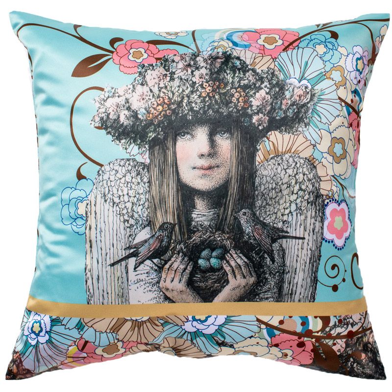 Чудесная двусторонняя мягкая подушка украсит любой уголок Вашего дома и станет его эффектным дополнением. Подушка, выполненная из современного прочного материала и с обеих сторон украшенная изображением милого ангела, держащего в руках гнездо, в окружении разнообразных цветов, будет радовать Вас, создавая ощущение домашнего тепла и уюта. Наполнитель - холлофайбер. Может использоваться как самостоятельный элемент интерьера, так и в качестве дополнения коллекции “Мятная”, которая создана дизайнером “Myatashop” на основе рисунков российского художника Алёны Наливкиной. Оригинальный и стильный дизайн позволяет расставить необходимые акценты. Создайте неповторимую атмосферу в Вашем доме с предметами интерьера из нашего магазина!