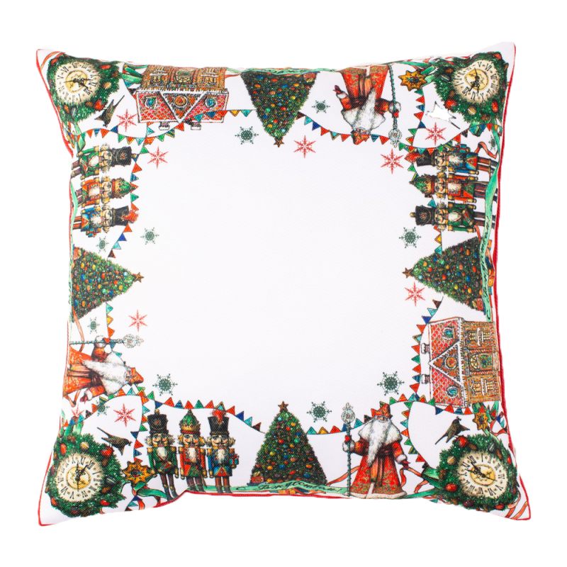 Чудесная мягкая подушка “Зимняя сказка” украсит любой уголок Вашего дома и станет его эффектным дополнением. Подушка, выполненная из современного прочного материала (твил), украшена изображением Деда Мороза, наряженными елками, новогодними и рождественскими персонажами и надписью “С Рождеством”. Наполнитель - холлофайбер. Такая подушка станет идеальным дополнением коллекции “Зимняя сказка”. Создайте неповторимую атмосферу в Вашем доме с предметами интерьера из нашего магазина!