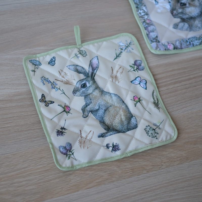 Текстиль на кухне играет важную роль. Какая хозяйка сможет обойтись без прихватки? С прихваткой “Кролик на лужайке” процесс приготовления пищи станет легче и приятнее. С ней достать горячий противень или снять кастрюлю с плиты не составит труда. Стеганая прихватка изготовлена из прочного габардина. Имеет петельку для подвешивания. С обеих сторон украшена рисунком с изображениями кролика, вокруг которого изображены цветы и бабочки. Такая прихватка может стать красивым и полезным подарком. Создайте неповторимую атмосферу в Вашем доме с предметами интерьера из нашего магазина!