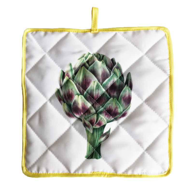 Текстиль на кухне играет важную роль. Какая хозяйка сможет обойтись без прихватки? С прихваткой “Овощи” процесс приготовления пищи станет легче и приятнее. С ней достать горячий противень или снять кастрюлю с плиты не составит труда. Стеганая прихватка изготовлена из прочного габардина. Имеет петельку для подвешивания. С обеих сторон украшена рисунком с изображением артишока. Такая прихватка может стать красивым и полезным подарком. Создайте неповторимую атмосферу в Вашем доме с предметами интерьера из нашего магазина!