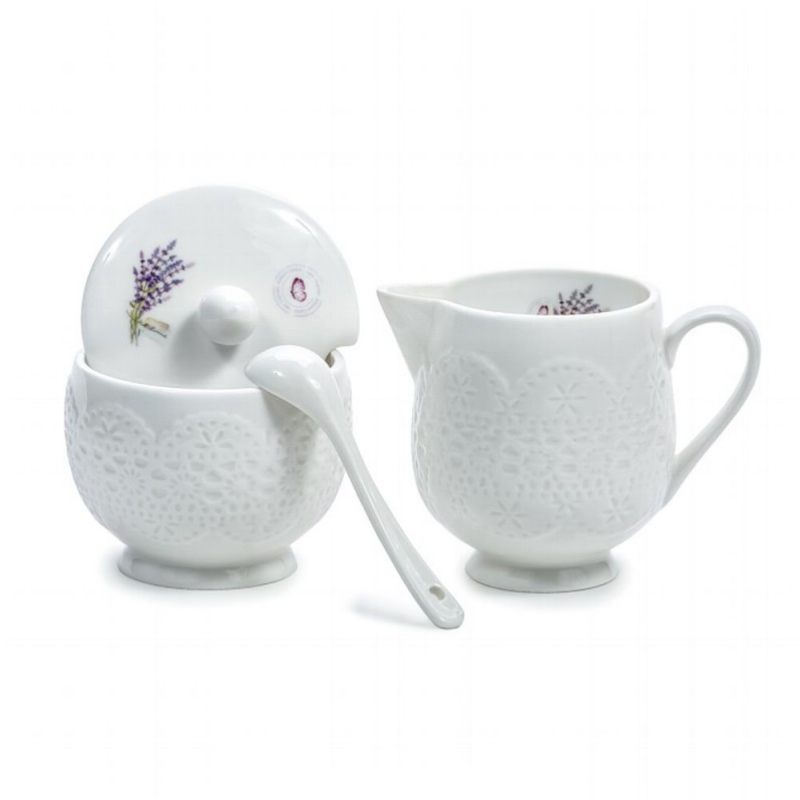 Итальянская коллекция “Уютный Дом-Лаванда” имеет много поклонников среди российских потребителей. Симпатичная сахарница с ложкой и оригинальный сливочник не оставят равнодушным любителя красивой и изящной посуды. Прекрасное художественное оформление - нежное ажурное тиснение и очаровательная лаванда - подчеркивает стиль изделий. Отличное дополнение к чайным или кофейным предметам из этой коллекции. Объем сахарница: 150 мл Объем сливочник: 150 мл Материал: Фарфор Бренд: Nuova R2S SpA, Италия.