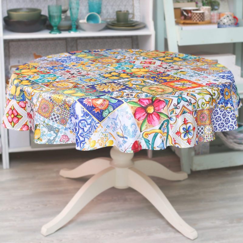 Круглая скатерть “Летнее настроение” станет эффектным дополнением интерьера Вашего дома. Выполненная из практичного современного материала (сатен), украшенная летним принтом, она будет радовать Вас, создавая прекрасное настроение и наполняя Ваш дом ощущением солнечного лета. Оригинальный дизайн и стильное цветовое решение позволяют расставить необходимые акценты. Создайте неповторимую атмосферу в Вашем доме с предметами интерьера из нашего магазина!