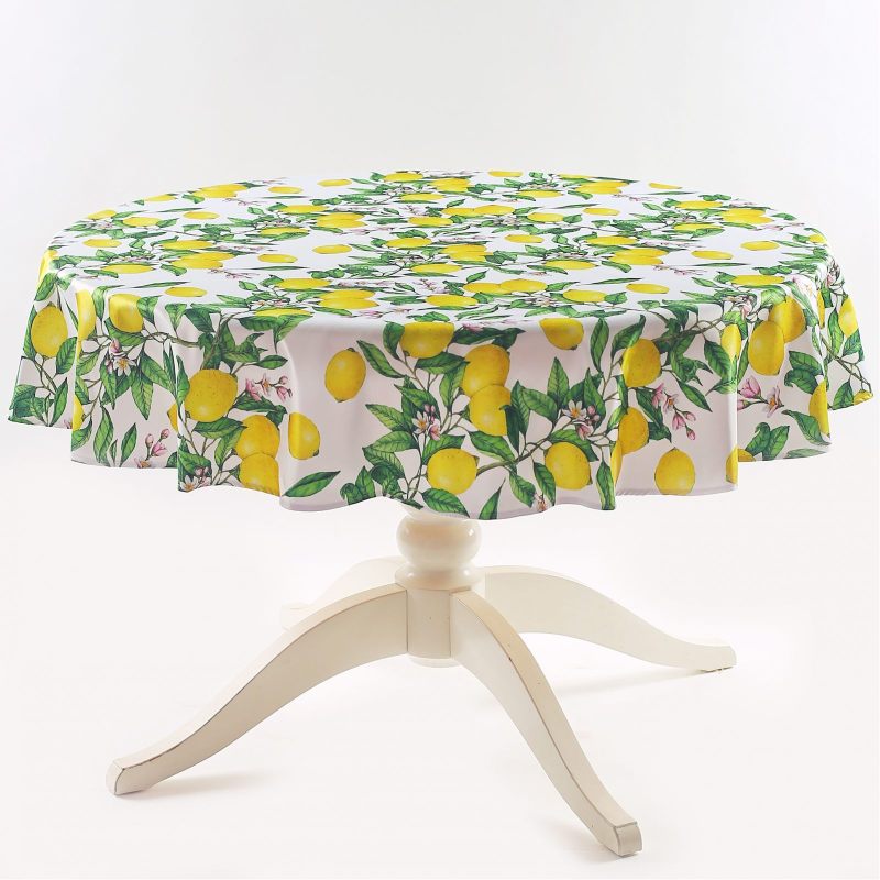 Круглая скатерть “Лимоны” станет эффектным дополнением интерьера Вашего дома. Выполненная из современного прочного материала, украшенная изображением ярких зеленых веточек со спелыми лимонами, она будет радовать Вас, создавая прекрасное настроение и наполняя Ваш дом ощущением весны. Яркий принт подарит весеннее настроение в любое время года. Скатерть может использоваться как самостоятельный элемент интерьера, так и в качестве дополнения коллекции “Лимоны”. Оригинальный дизайн и стильное цветовое решение позволяют расставить необходимые акценты. Создайте неповторимую атмосферу в Вашем доме с предметами интерьера из нашего магазина!