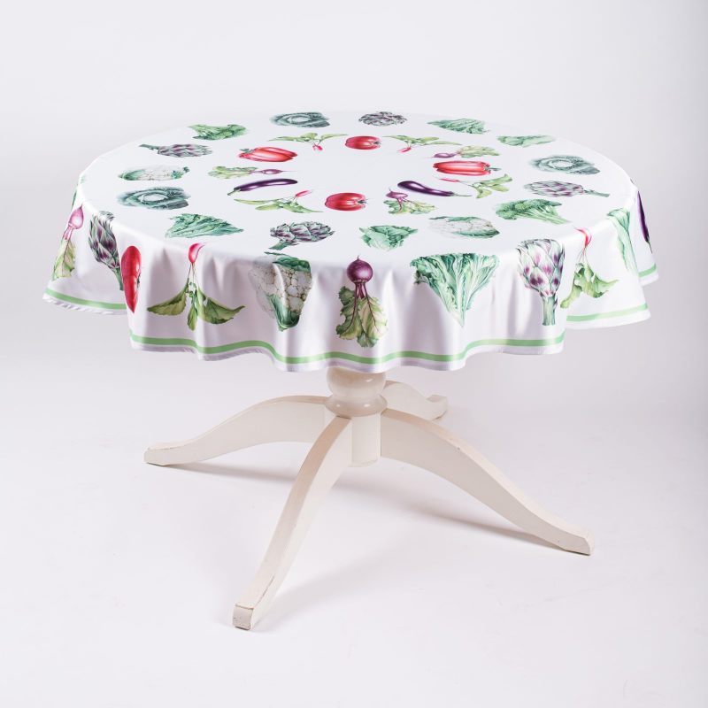 Круглая скатерть “Овощи” станет эффектным дополнением интерьера Вашего дома. Выполненная из современного прочного материала, украшенная изображением сочных свежих овощей, она будет радовать Вас, создавая прекрасное настроение и наполняя Ваш дом ощущением лета. Скатерть может использоваться как самостоятельный элемент интерьера, так и в качестве дополнения коллекции “Овощи”. Оригинальный дизайн и стильное цветовое решение позволяют расставить необходимые акценты. Создайте неповторимую атмосферу в Вашем доме с предметами интерьера из нашего магазина!