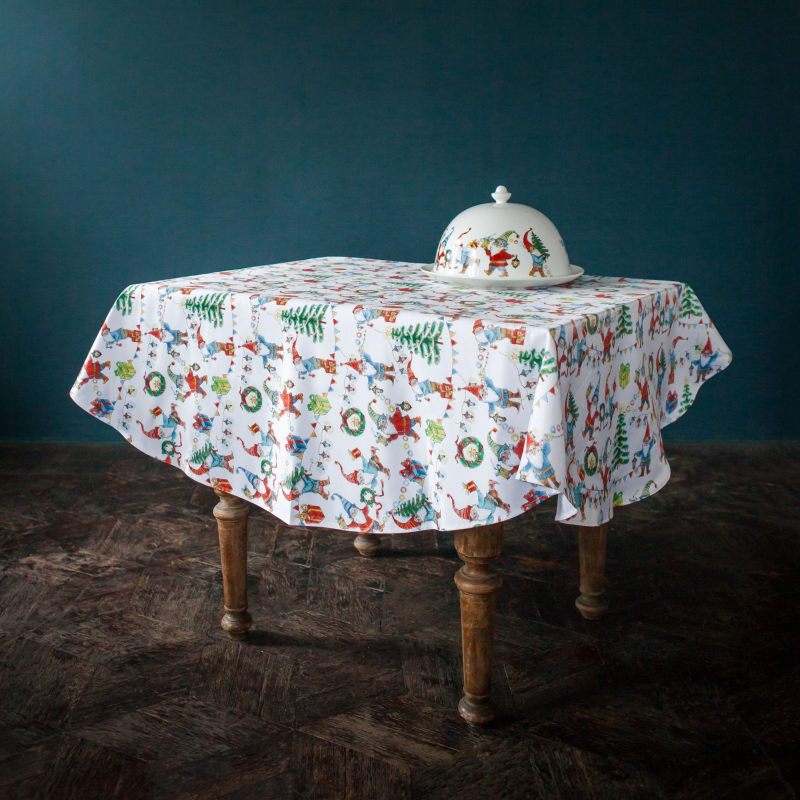 Скатерть “Гномы” подарит новогоднее настроение и наполнит Ваш дом ощущением праздника. Овальная скатерть украшена изображением забавных гномов в ярких одеждах. Скатерть изготовлена из прочного и практичного современного материала. Может использоваться как самостоятельный элемент интерьера, так и в качестве дополнения коллекции “Гномы”. Оригинальный и стильный дизайн позволяет расставить необходимые акценты. Создайте неповторимую атмосферу новогодних праздников в Вашем доме с предметами интерьера из нашего магазина!