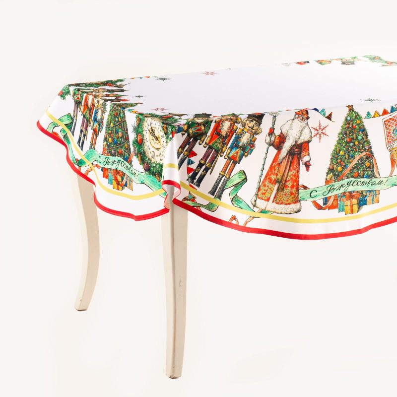 Яркая овальная скатерть “Зимняя сказка” подарит новогоднее настроение и наполнит Ваш дом ощущением праздника. Скатерть украшена изображением Деда Мороза, наряженными елками, новогодними и рождественскими персонажами и надписью “С Рождеством”. Изготовлена из прочного и практичного современного материала. Может использоваться как самостоятельный элемент интерьера, так и в качестве дополнения коллекции “Зимняя сказка”. Оригинальный и стильный дизайн позволяет расставить необходимые акценты. Создайте неповторимую атмосферу новогодних праздников в Вашем доме с предметами интерьера из нашего магазина!
