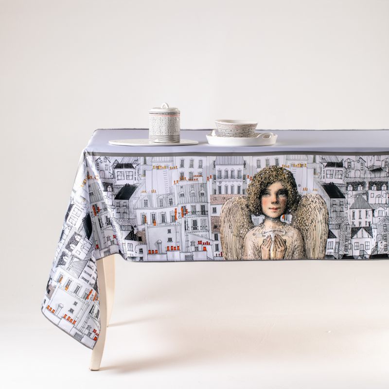 Чудесная скатерть “Город ангелов” подарит праздничное настроение и наполнит Ваш дом теплом и уютом. Большая прямоугольная скатерть жемчужно-серого цвета декорирована кантом и украшена изображением милого ангела, за спиной которого виднеются городские дома. Скатерть изготовлена из прочного и практичного современного материала. Может использоваться как самостоятельный элемент интерьера, так и в качестве дополнения коллекции “Город ангелов”, которая создана дизайнером “Myatashop” на основе рисунков российского художника Алёны Наливкиной. Оригинальный и стильный дизайн позволяет расставить необходимые акценты. Создайте неповторимую атмосферу в Вашем доме с предметами интерьера из нашего магазина!
