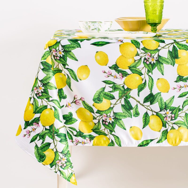 Прямоугольная скатерть “Лимоны” станет эффектным дополнением интерьера Вашего дома. Выполненная из современного прочного материала, украшенная изображением ярких зеленых веточек со спелыми лимонами, она будет радовать Вас, создавая прекрасное настроение и наполняя Ваш дом ощущением весны. Яркий принт подарит весеннее настроение в любое время года. Скатерть может использоваться как самостоятельный элемент интерьера, так и в качестве дополнения коллекции “Лимоны”. Оригинальный дизайн и стильное цветовое решение позволяют расставить необходимые акценты. Создайте неповторимую атмосферу в Вашем доме с предметами интерьера из нашего магазина!