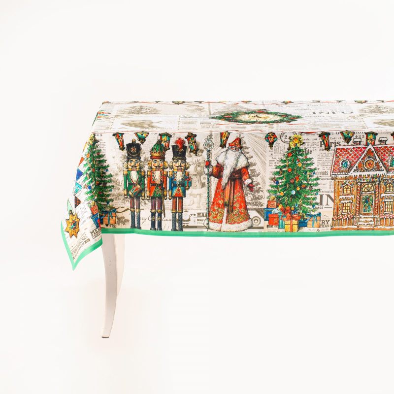 Эффектная скатерть “Пряничное Рождество” подарит новогоднее настроение и наполнит Ваш дом ощущением праздника. Прямоугольная скатерть украшена изображением Деда Мороза, наряженными елками, пряничными домиками, новогодними и рождественскими персонажами. Основной фон представляет собой коллаж из газетных вырезок и фотографий на новогоднюю тему. Скатерть изготовлена из прочного и практичного твила (100% полиэстер); края оформлены подшивом. Может использоваться как самостоятельный элемент интерьера, так и в качестве дополнения коллекции “Пряничное Рождество”. Погрешность в измерениях в пределах 5 см. Оригинальный и стильный дизайн позволяет расставить необходимые акценты. Имеет привлекательную упаковку, поэтому станет красивым и практичным подарком для Ваших друзей и близких. Создайте неповторимую атмосферу новогодних праздников в Вашем доме с предметами интерьера из нашего магазина!