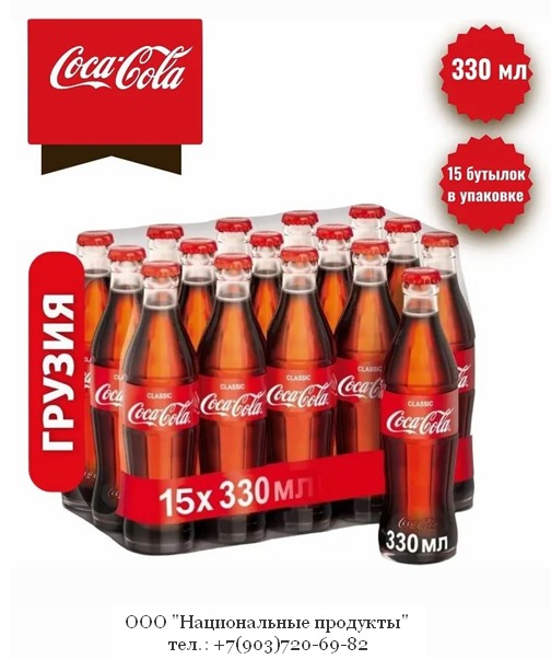 Чтобы купить Напиток газированный Coca Cola 0.330 (Грузия) оптом по цене 110 руб., свяжитесь с поставщиком. Компания поставщик — Национальные продукты (ООО «Национальные продукты») из города Москва. Минимальная сумма оптового заказа: 15000 руб. Минимальная партия 300 шт. Доставка возможна самовывоз, транспортной компанией, автомобилем, железной дорогой.