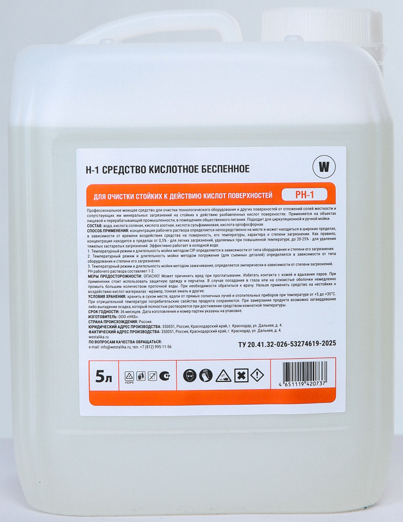 Чтобы купить H-1 Средство кислотное беспенное, pH-1 WA508007 оптом по цене по запросу, свяжитесь с поставщиком. Компания поставщик — НКБ (ООО «НКБ») из города Санкт-Петербург. Доставка возможна самовывоз, транспортной компанией. Способы оплаты: наличными, безналичная оплата.