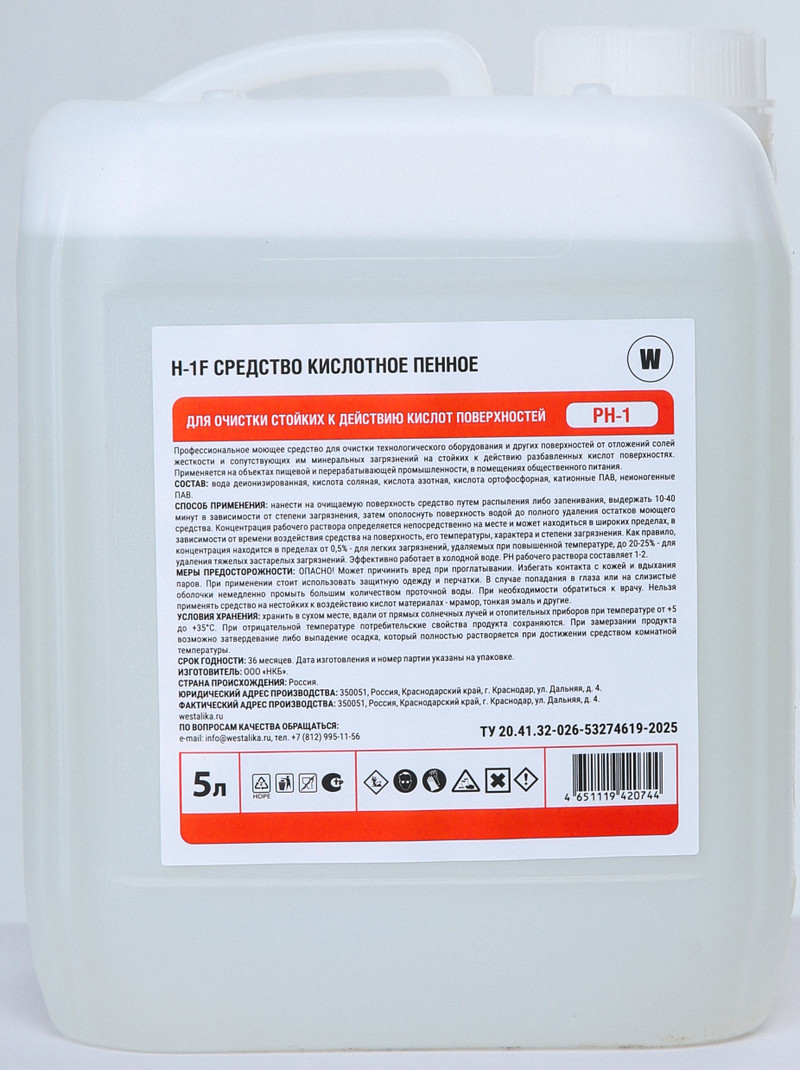 Чтобы купить H-1F Средство кислотное пенное, pH-1 WA508008 оптом по цене по запросу, свяжитесь с поставщиком. Компания поставщик — НКБ (ООО «НКБ») из города Санкт-Петербург. Доставка возможна самовывоз, транспортной компанией. Способы оплаты: наличными, безналичная оплата.
