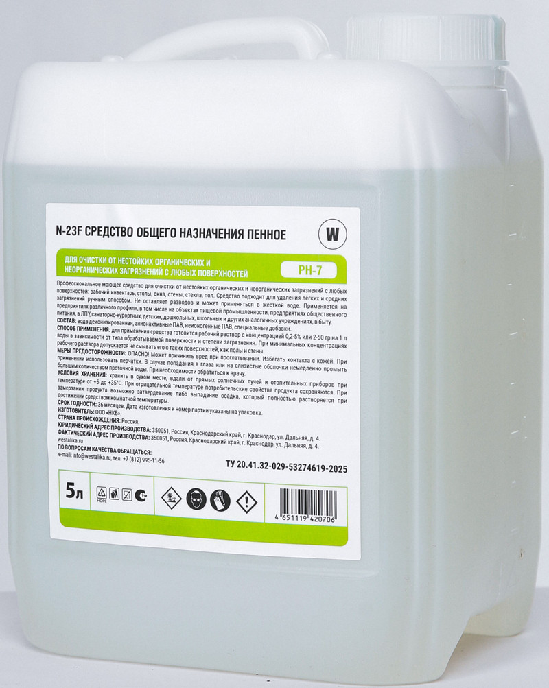 Чтобы купить N-23F Средство общего назначения пенное рН-7 WA508004 оптом по цене по запросу, свяжитесь с поставщиком. Компания поставщик — НКБ (ООО «НКБ») из города Санкт-Петербург. Доставка возможна самовывоз, транспортной компанией. Способы оплаты: наличными, безналичная оплата.