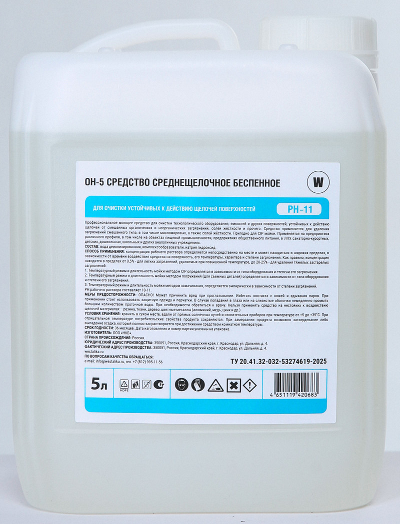 Чтобы купить OH-5 Средство беспенное среднещелочное, pH-11 WA508002 оптом по цене по запросу, свяжитесь с поставщиком. Компания поставщик — НКБ (ООО «НКБ») из города Санкт-Петербург. Доставка возможна самовывоз, транспортной компанией. Способы оплаты: наличными, безналичная оплата.