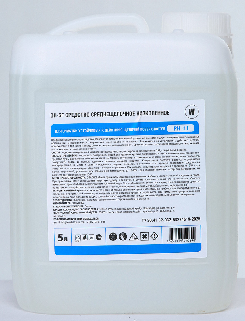 Чтобы купить OH-5F Средство низкопенное среднещелочное, pH-11 WA508003 оптом по цене по запросу, свяжитесь с поставщиком. Компания поставщик — НКБ (ООО «НКБ») из города Санкт-Петербург. Доставка возможна самовывоз, транспортной компанией. Способы оплаты: наличными, безналичная оплата.