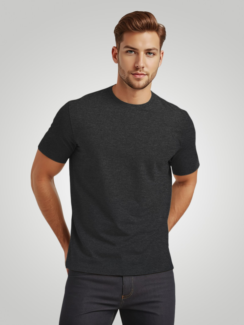 Однотонная базовая мужская футболка прямого кроя с округлым вырезом горловины в цвете антрацит от российского бренда НКstyle.