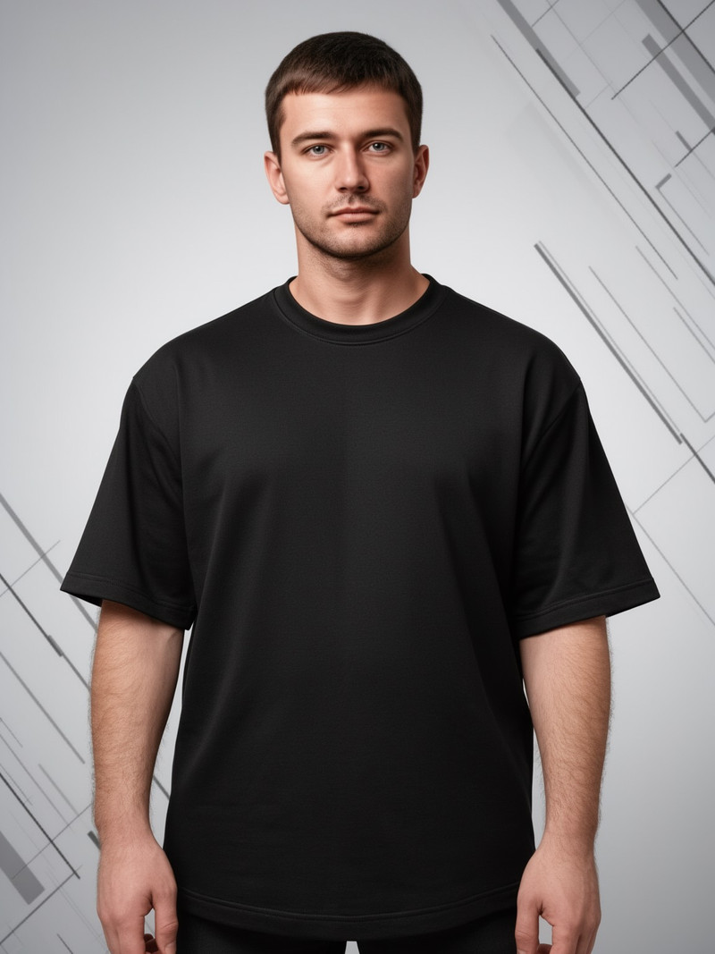 Однотонная мужская футболка оверсайз с округлым вырезом горловины в черном цвете от российского бренда НКstyle.