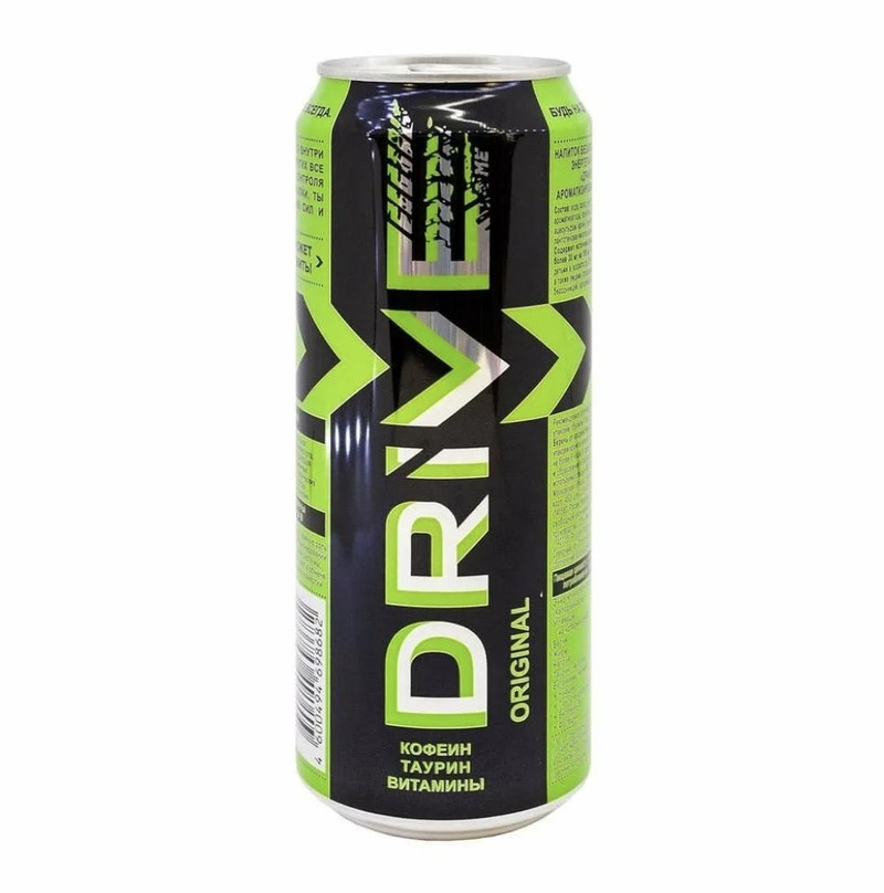 DRIVE (Drive Me) — это энергетический напиток с кофеином, таурином и витаминами группы B, который быстро заряжает энергией и повышает концентрацию внимания. Подходит для активных людей, студентов и тех, кто хочет оставаться на драйве весь день. В составе также есть сахар и регуляторы кислотности, а энергетическая ценность составляет около 43 ккал на 100 мл.
