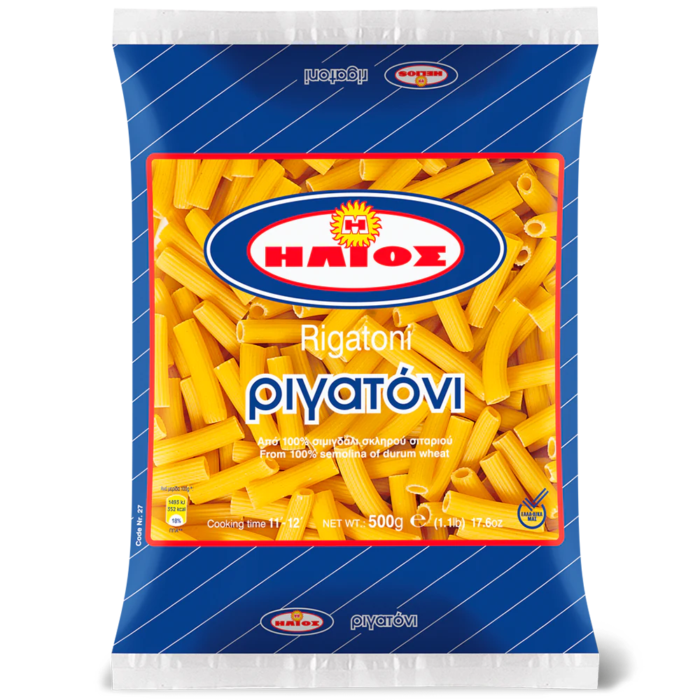 Греческая паста из твёрдых сортов пшеницы HELIOS “RIGATONI”