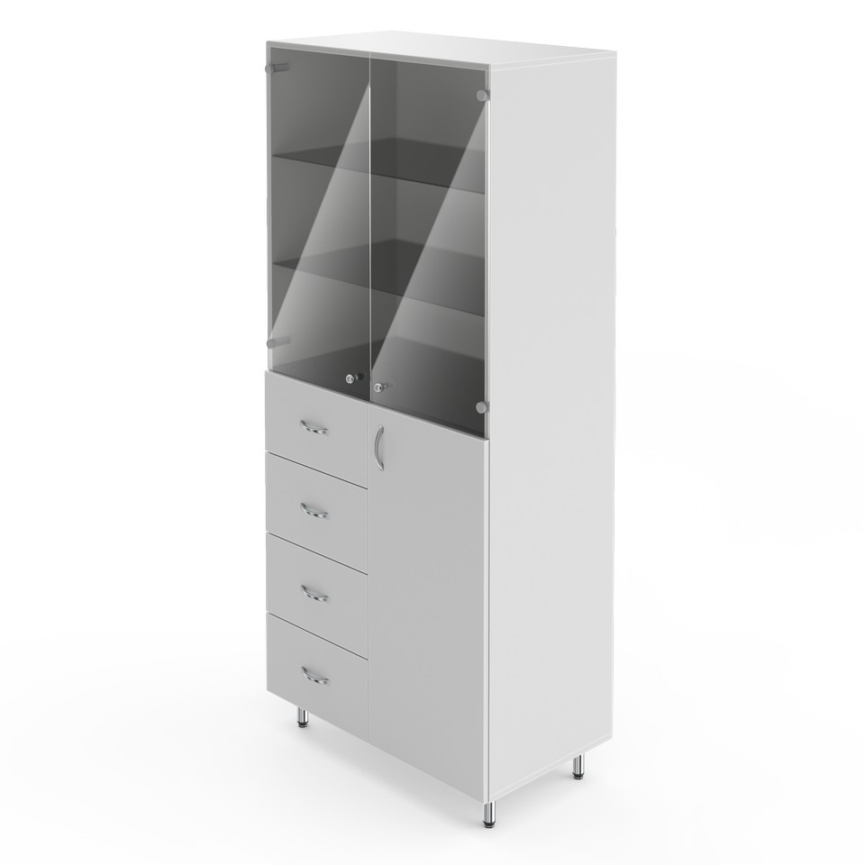 Дверцы: сверху стеклянные, снизу ЛДСП.