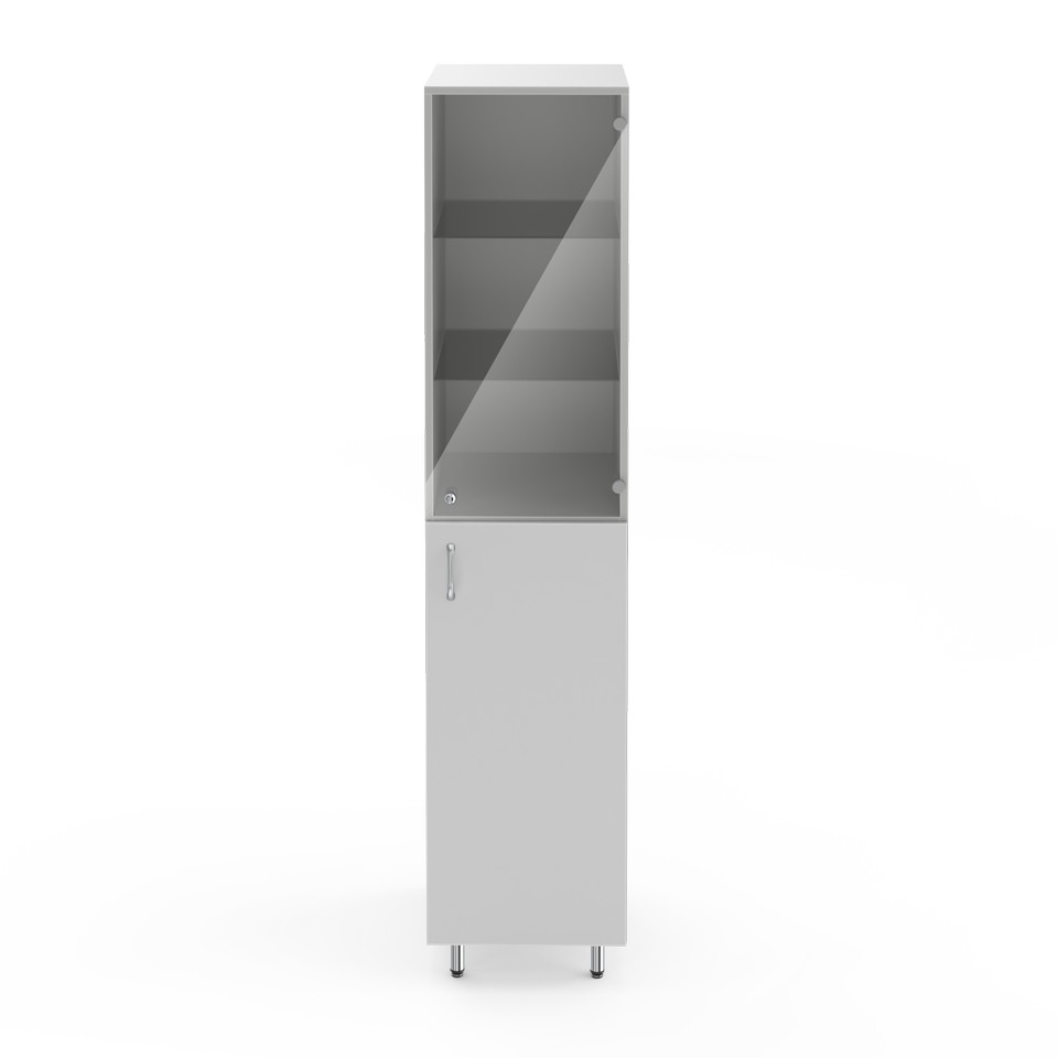 Дверцы: нижняя дверца из ЛДСП, верхняя из стекла.