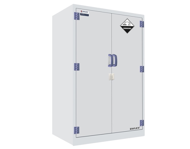 Для повышения эксплуатационной безопасности можно использовать навесной замок. Для хранения сильных коррозийных химикатов, таких как серная кислота, азотная кислота, уксусная кислота и д. Оснащён полипропиленовым герметичным поддоном, который можно снять отдельно для лёгкой очистки. Все составные части шкафа выполнены из полипропилена, устойчивого к воздействию кислот и агрессивных жидкостей.