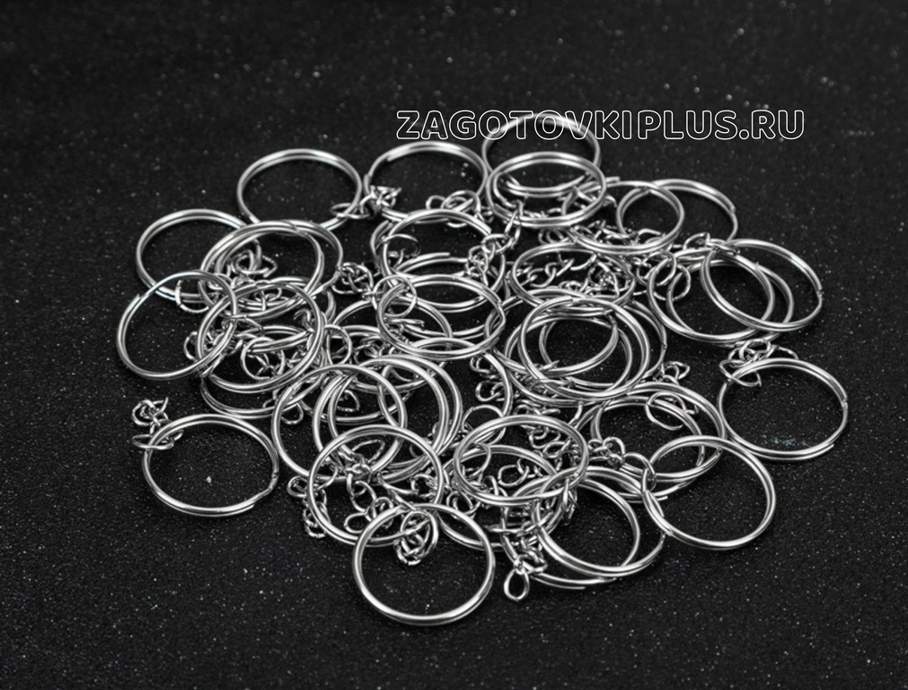 Кольцо витое гладкое вместе с цепочкой очень легко крепится на брелок.Диаметр кольца: 25мм.