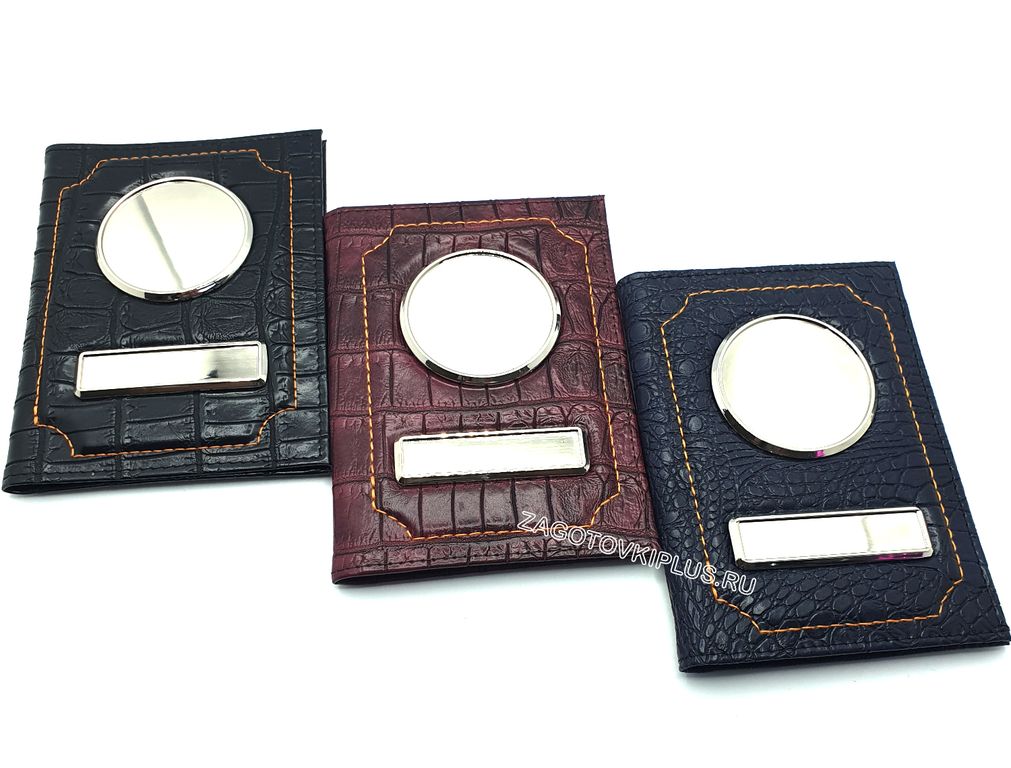 обложка из искусственной кожи крокодила на автодокументы с металлическими вставками хром или золото на Ваш выбор