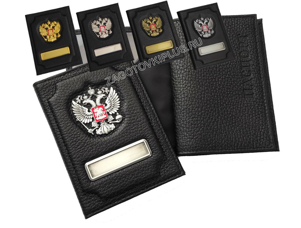 обложка из премиальной кожи флотер (натуральной матовой ребристой) на автодокументы + паспорт с металлическими вставками герб России и прямоугольник