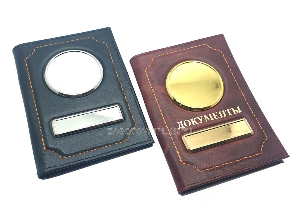 Обложка из премиальной кожи Pull-Ap на автодокументы с металлическими вставками хром или золото на Ваш выбор