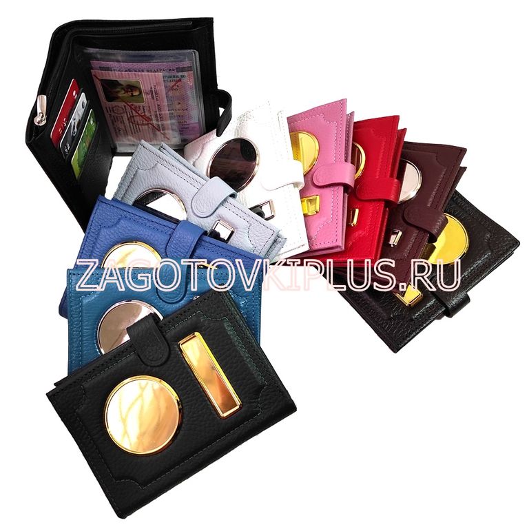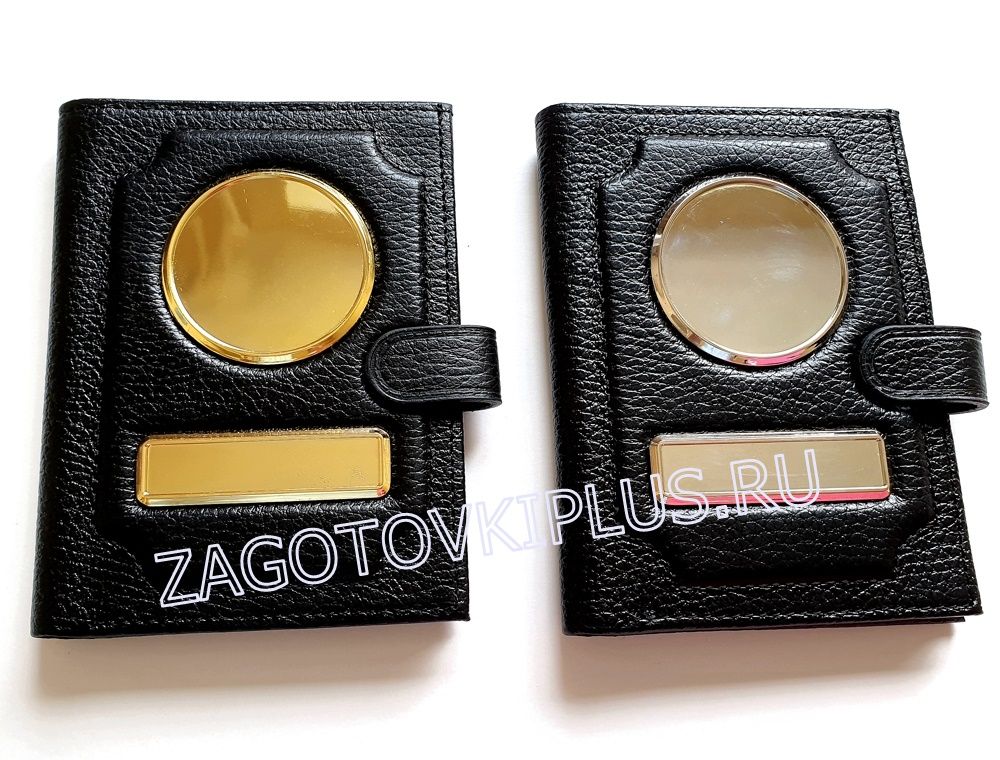 металлические вставками круг и прямоугольник цвета хром или золото на Ваш выбор (уже надежно прикреплены на портмоне)
