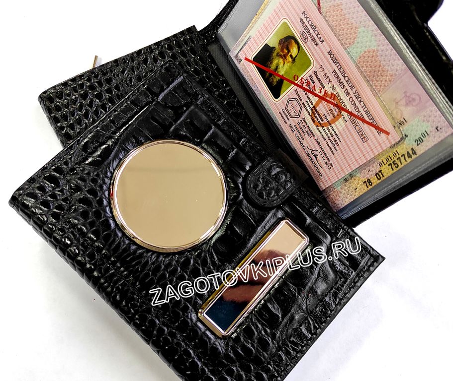 металлические вставками круг и прямоугольник цвета хром или золото на Ваш выбор (уже надежно прикреплены на портмоне)