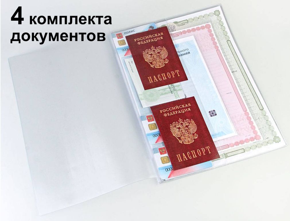 4 отдела А4 под свидетельство о рождении нового образца, ПТС на автомобиль, ИНН и т.п. (212х305мм).