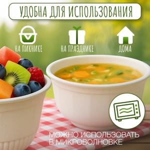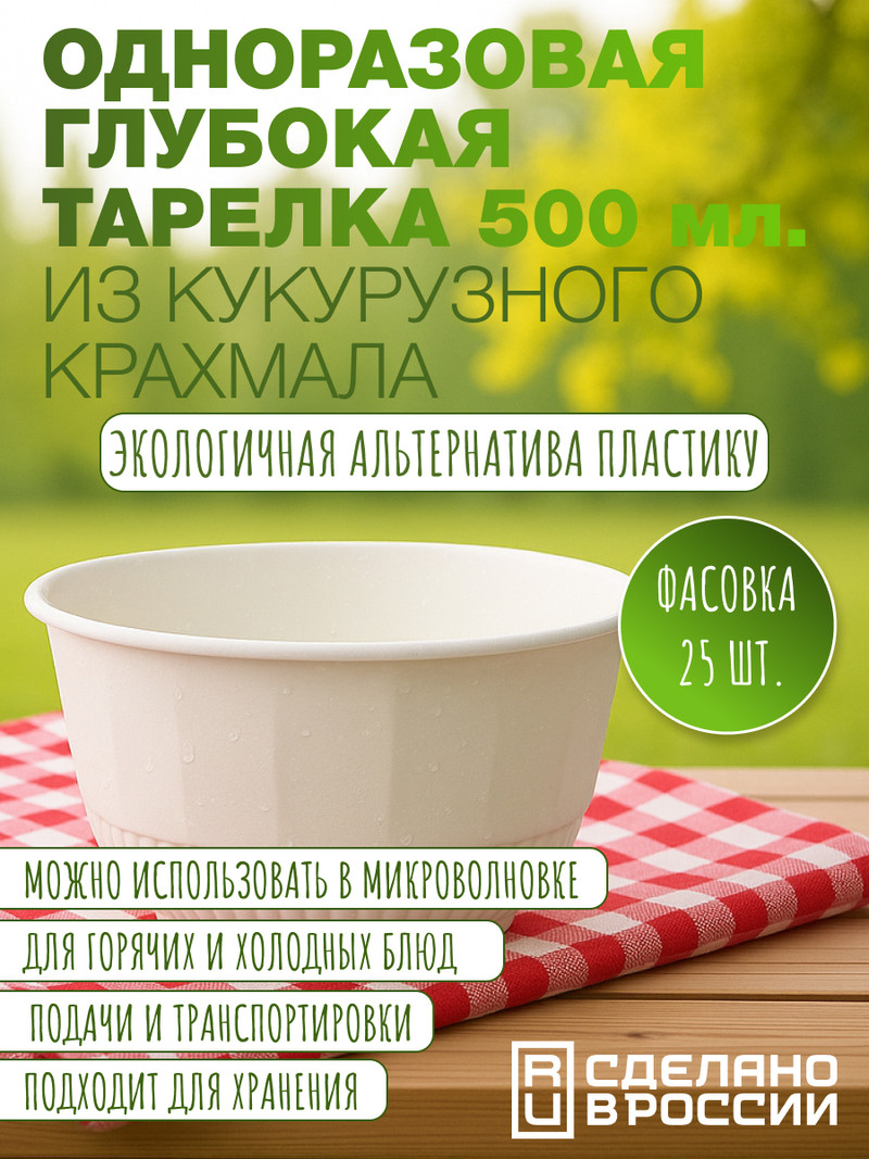 Подходит для холодных и горячих продуктов (от -20 град. до +100 град). При необходимости может быть использована не однократно, легко моется теплой водой. После использования утилизируется путем естественного биологического разложения в почве в течение 6 месяцев или сжигания, не загрязняя окружающую среду. Посуда прочна и гигиенична, не влияет на вкусовые качества пищи, не впитывает запахи, имеет высокую влагопрочность и жиростойкость.