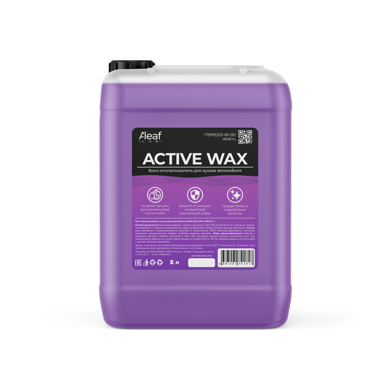 Концентрированный воск, защищающий автомобиль от внешних воздействий окружающей среды. Обладает высокой водоотталкивающей способностью, ускоряя процесс высыхания кузова после Мойки. Придаёт дополнительный блеск и гидрофобные свойства. Не пачкает и не повреждает стекла. Эффективен даже при использовании жесткой воды и низких температурах. Может использоваться в Мойка тоннельного и портального типа, а так же на самомойках. Разведение 40-50 грамм на литр воды.