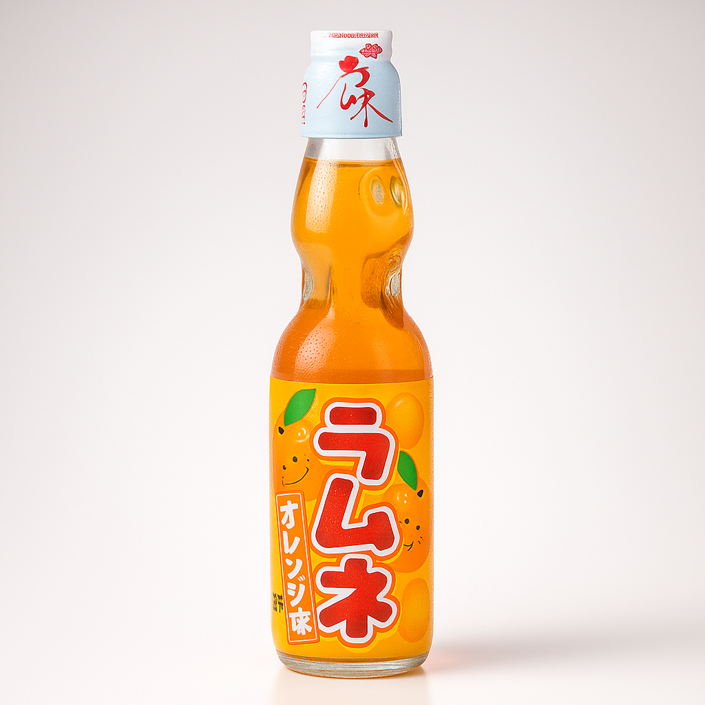 Ramune Orange — японский газированный лимонад со вкусом апельсина в культовой стеклянной бутылке формата Codd-neck с мраморной пробкой. Освежающий цитрусовый профиль с деликатной сладостью делает напиток отличным выбором для ценителей необычных вкусов и японских новинок.