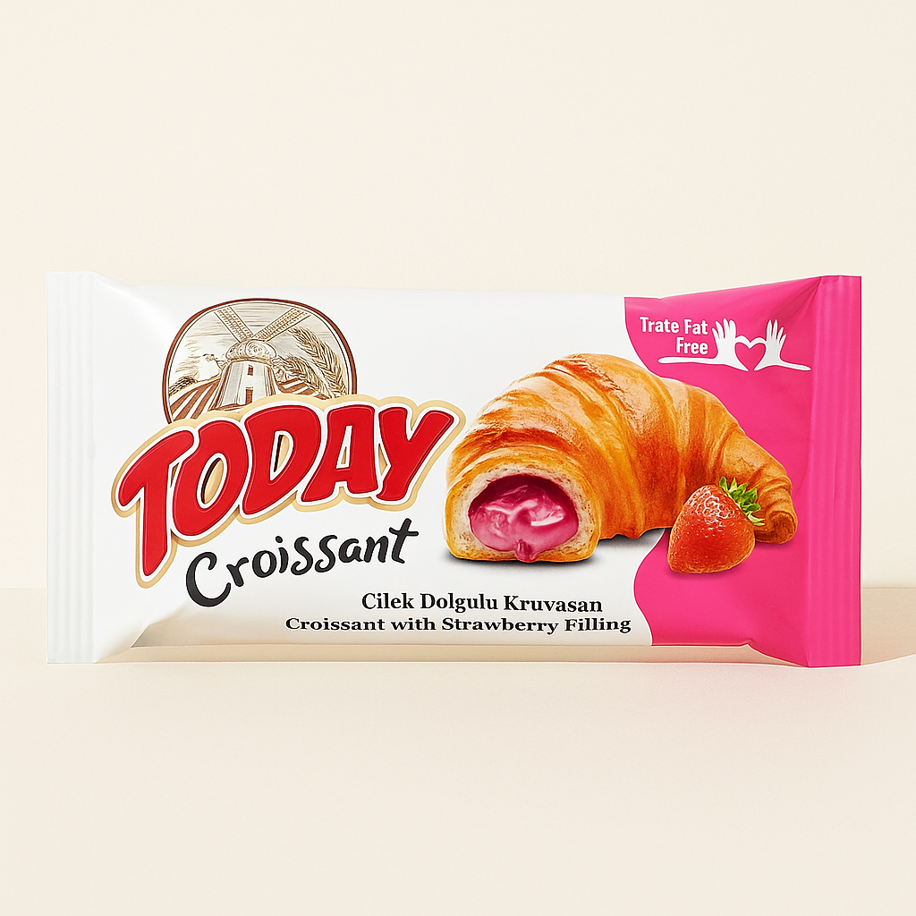 Порционный круассан Today от ELVAN — слоёное тесто и ароматная клубничная начинка. Удобный формат для перекуса. Официальный штрихкод: .