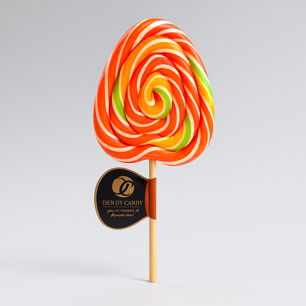 Dendy Candy Twist «Яйцо» 30 г — яркая леденцовая карамель на палочке с радужным твист-рисунком и фруктовым кисло-сладким вкусом. Плотная стекловидная текстура медленно тает, не прилипает к зубам, а овальная форма удобна для детей. Индивидуальная упаковка сохраняет блеск и аромат — леденец удобно взять на прогулку, положить в набор или использовать для кэнди-бара.