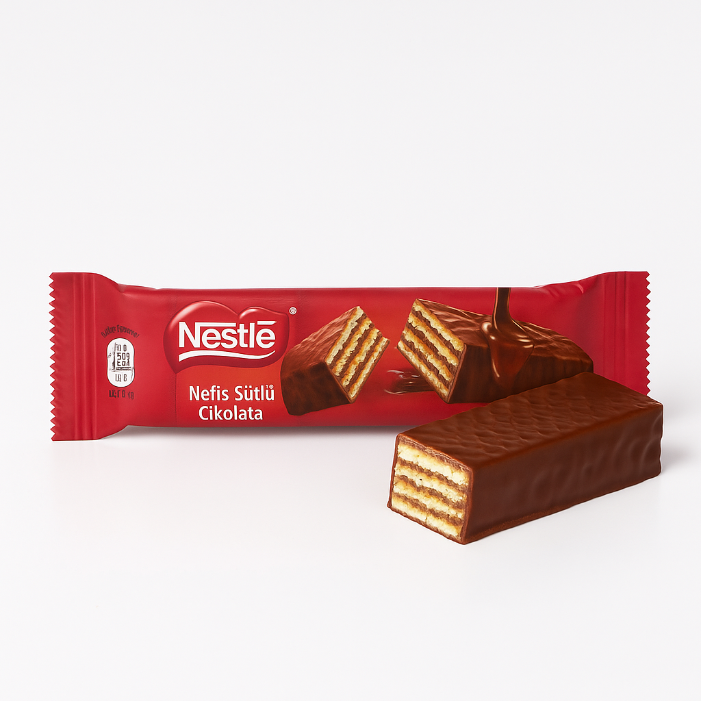 Nestlé Crispy Wafer — классический вафельный батончик с молочным шоколадом. Хрустящие вафельные слои и мягкий молочный шоколад создают сбалансированный вкус и текстуру, подходящие для импульсных покупок и перекуса в дороге.