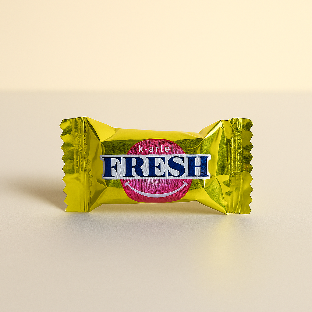 Порционная жвачка К-Артель из линейки FRESH (Smile Bubble) с ярким ароматом дыни. Формат 3 г — удобная единичная порция для кассовой зоны, наборов и комплиментов к заказу.