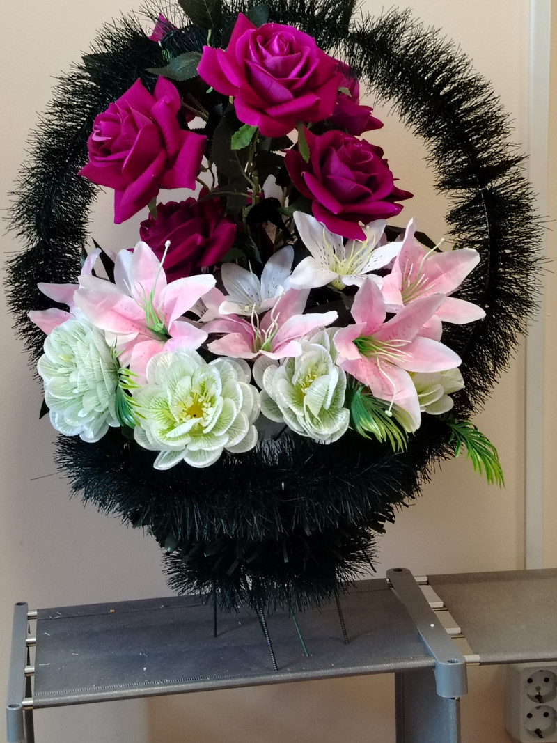 Наша компания производитель своей продукции. Мы изготавливаем ритуальные корзины всех видов (от больших до самых маленьких (полянок) Можем работать с заказчиком, по тем формам и наполнением цветочних композиций, на которые у него есть спрос.