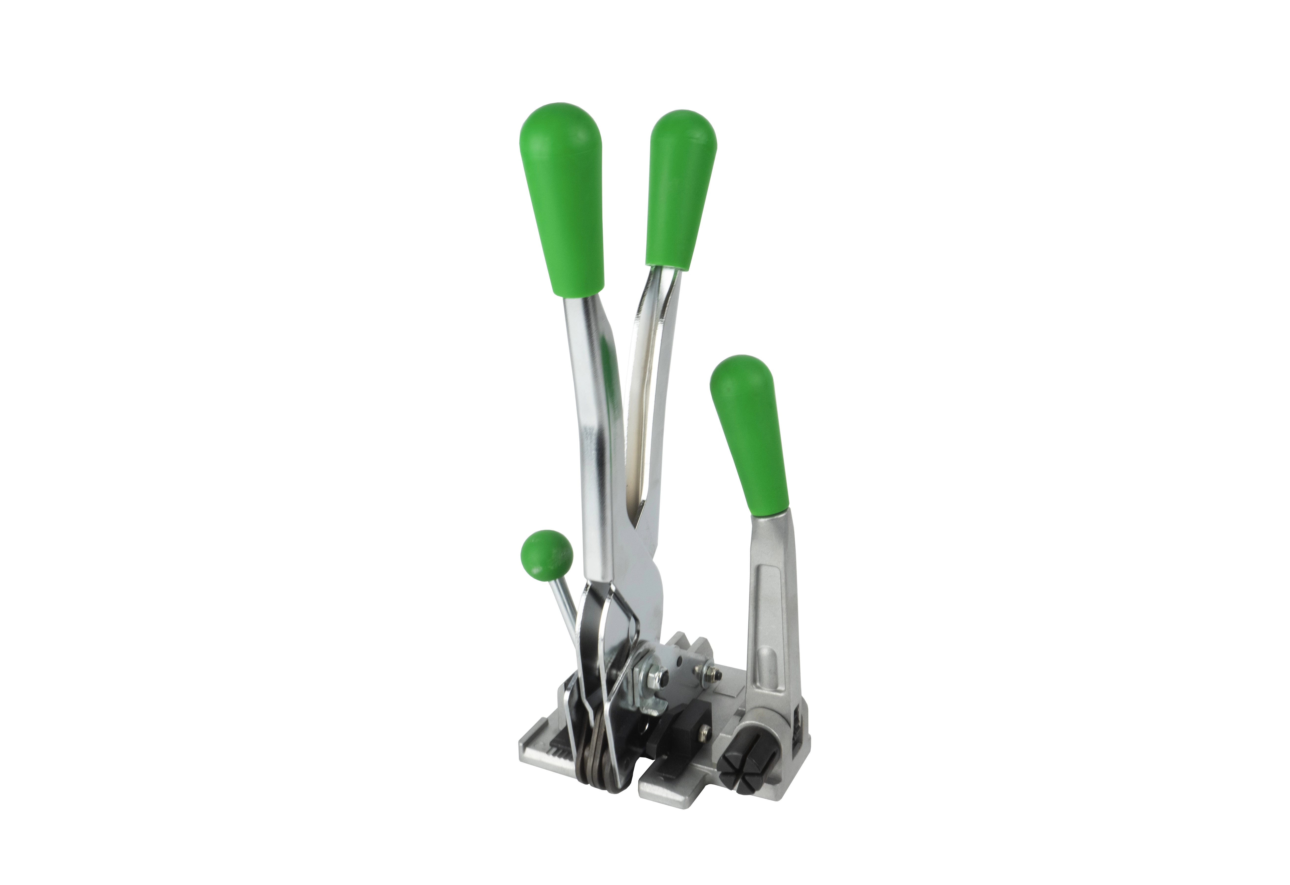 Комбинированное устройство SP-301 используют для ручной обвязки грузов полипропиленовыми лентами. Устройство обеспечивает натяжение ленты, зажим металлической скобы и обрезку излишков ленты.Инструмент удобно располагать горизонтально по отношению к грузу. При вертикальном положении устройства работать им менее удобно за счет габаритов. В данном случае стоит рассмотреть натяжитель и клещи отдельно.Для удобства устройство можно использовать с ленторазмотчиком.Производство – Тайвань.Выполняемые функции: натяжение, скрепление, отрезание ленты.Тип ленты: полипропиленовая.Ширина ленты: 12-16 мм.Толщина ленты: 0,5-1,0 мм.Способ скрепления: скоба (с перфорацией).